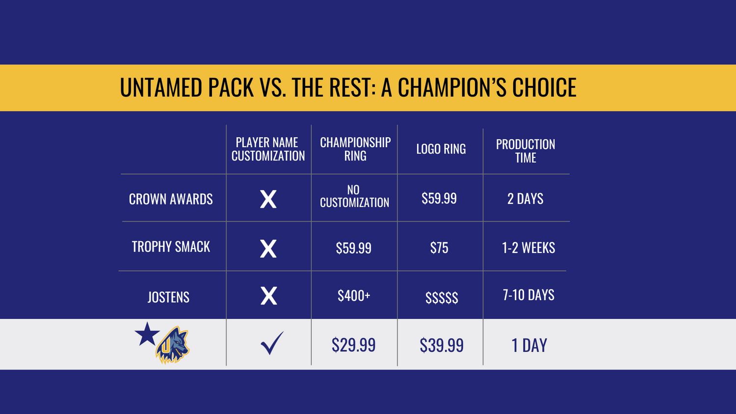 Commemorate your championship title with our signature top of the line championship ring, which has celebrated over 1,000 champions across the country.