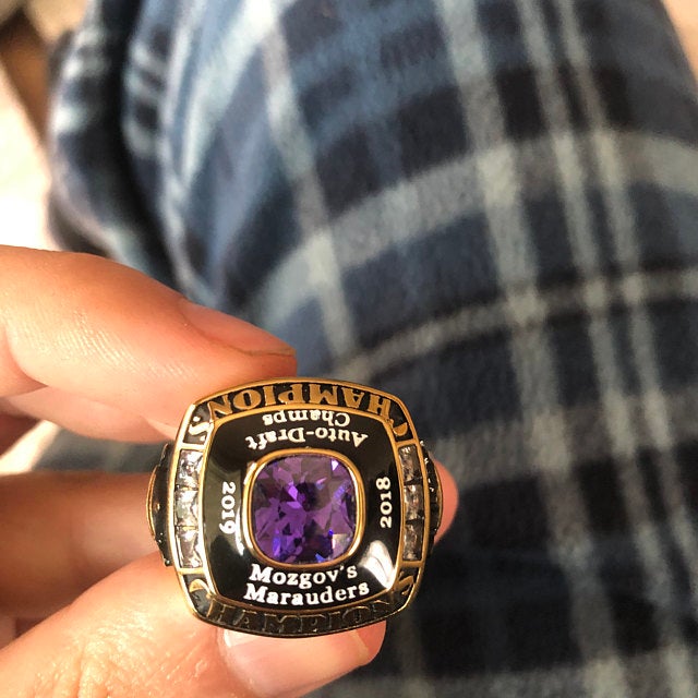 "Very happy with this ring! This is the gold option with the purple stone. Hopefully I win my fantasy football league again so I can buy another one!"